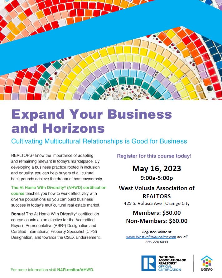 The course work for the At Home with Diversity® certification is designed to enable you to work successfully with and within a rapidly changing multicultural market. It will help you to learn diversity sensitivity, how it applies to U.S. fair housing laws in your business, and ways to develop professional guidelines for working with people in the increasingly multicultural real estate market.Images