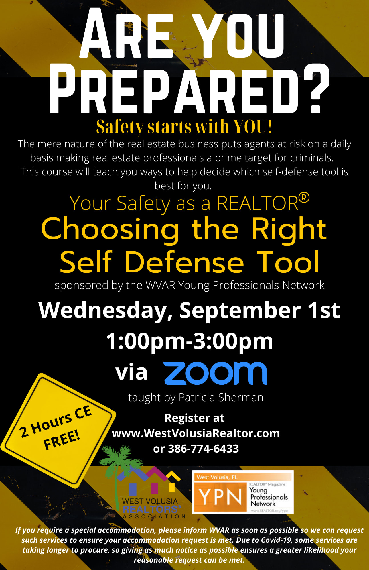 The mere nature of the real estate business puts agents at risk on a daily basis making Real Estate professionals a prime target for criminals. I'm sure you have heard of the recent crimes against Real estate professionals, Agents are not the only Targets! Join us for this 2-hour class to discuss the options you have to protect yourself and others sponsored by the WVAR Young Professionals Network.